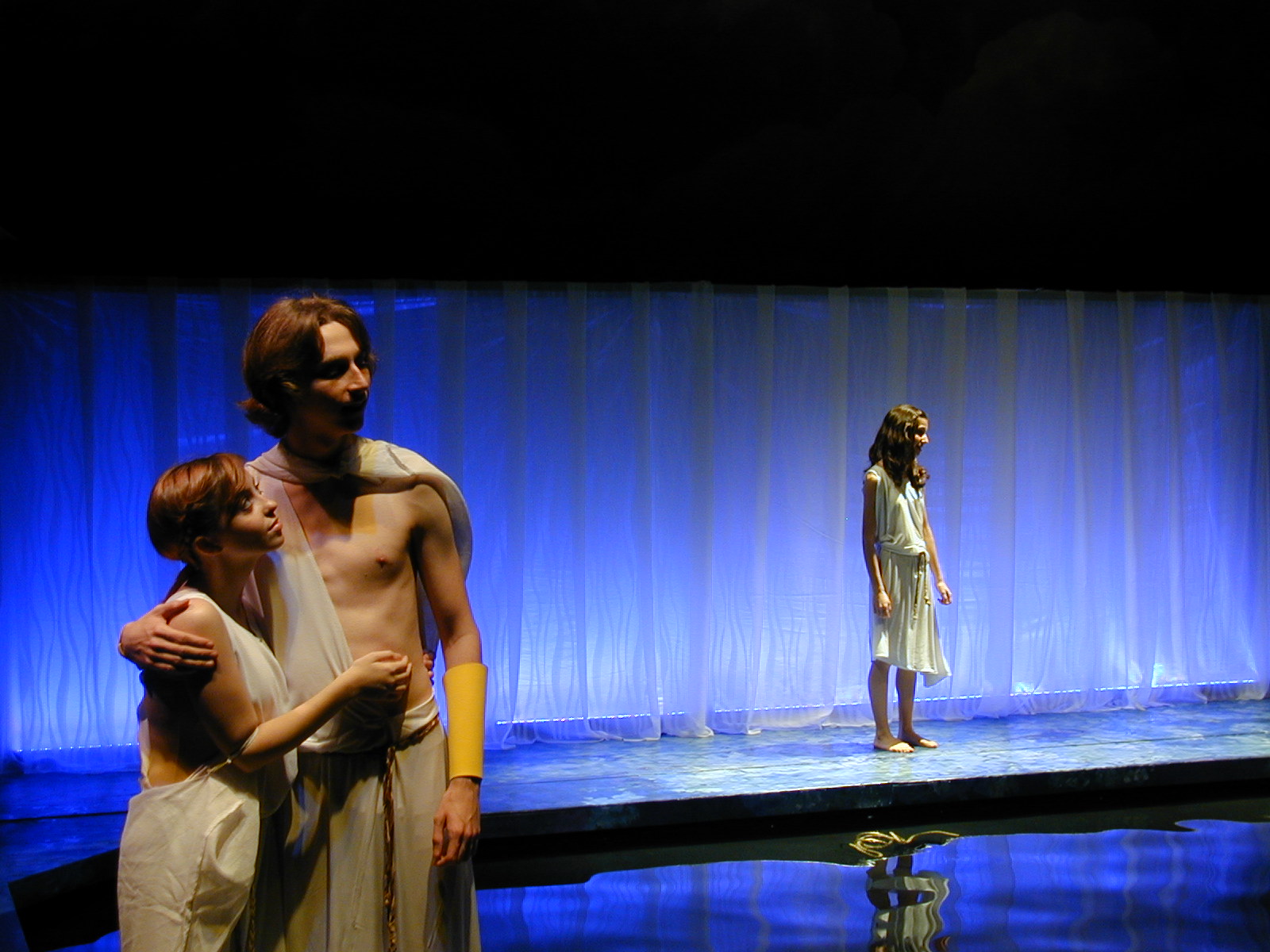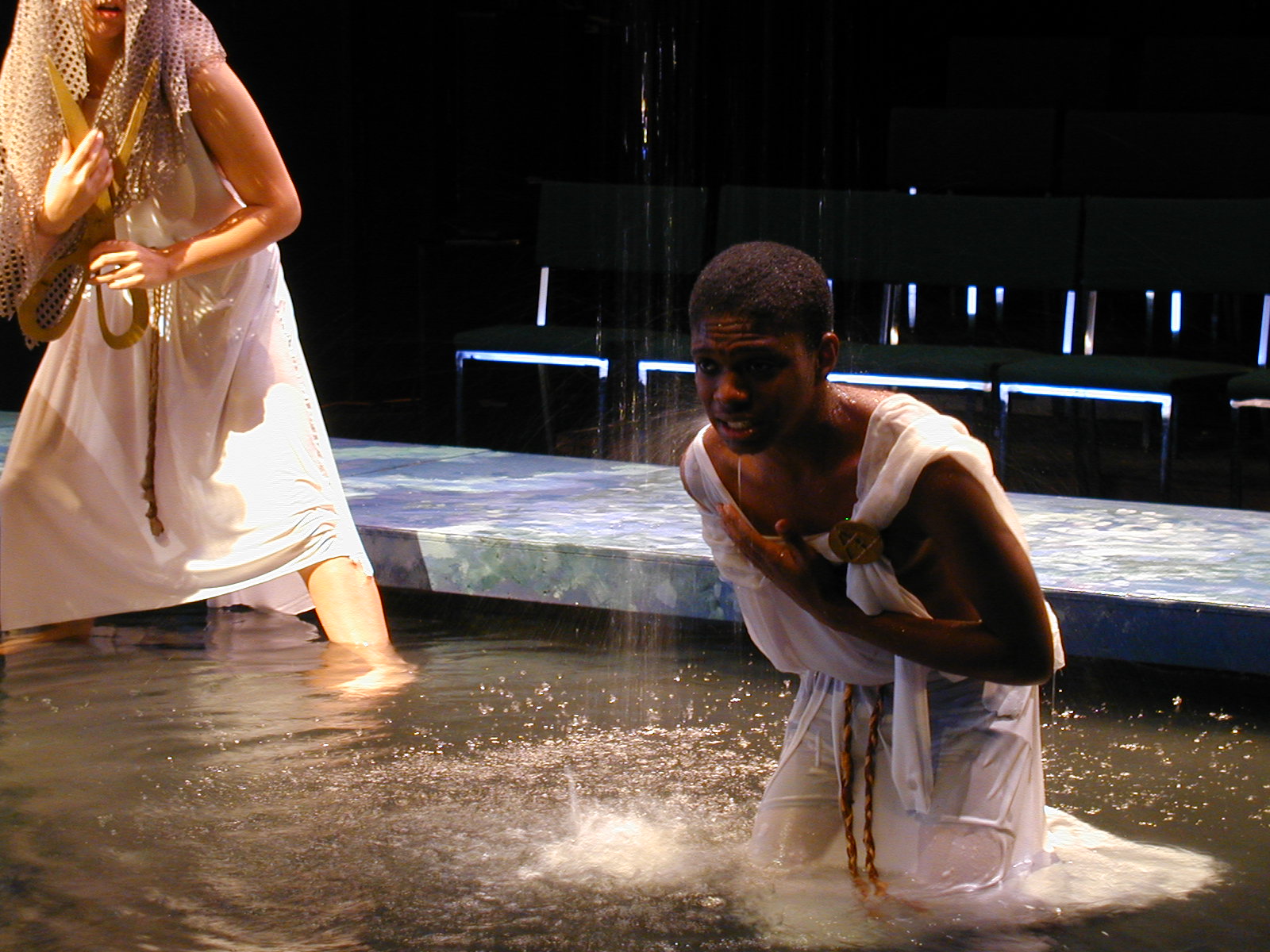 | We also opted for shallow pool. This still gave the water at the center of the show and allowed us to play this as a thrust stage with the audience all around. | |